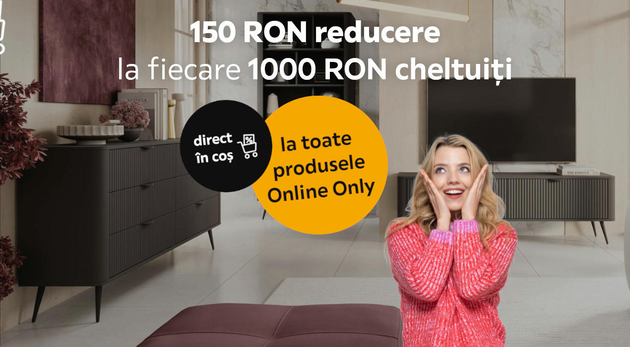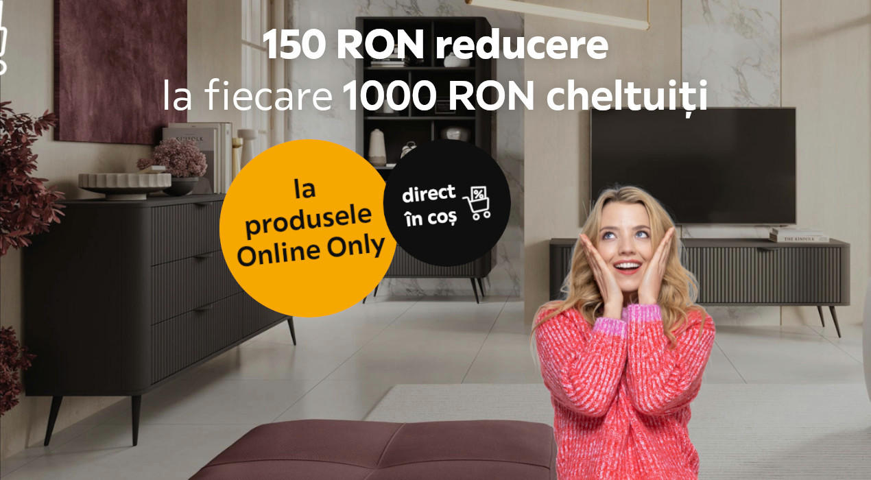 1) Ofertă valabilă în perioada 08.09 - 10.10.2025 pentru achiziții de mobilă în valoare de minim 1000 RON. Detalii în regulament.