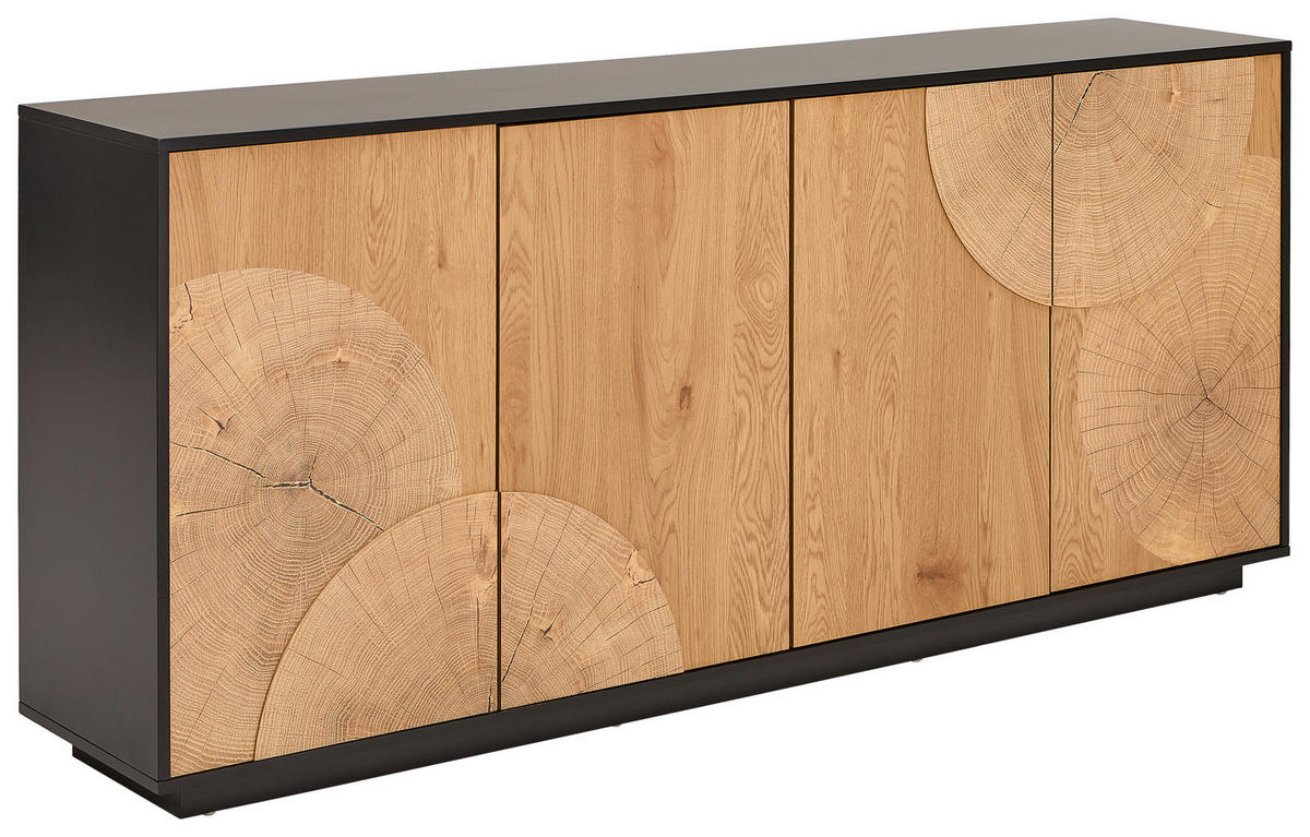 Comodă Cu Uși 180/81/40 cm  - culoare lemn stejar/negru, Lifestyle, material pe bază de lemn (180/81/40cm) - Ambia HomeAmbia Home