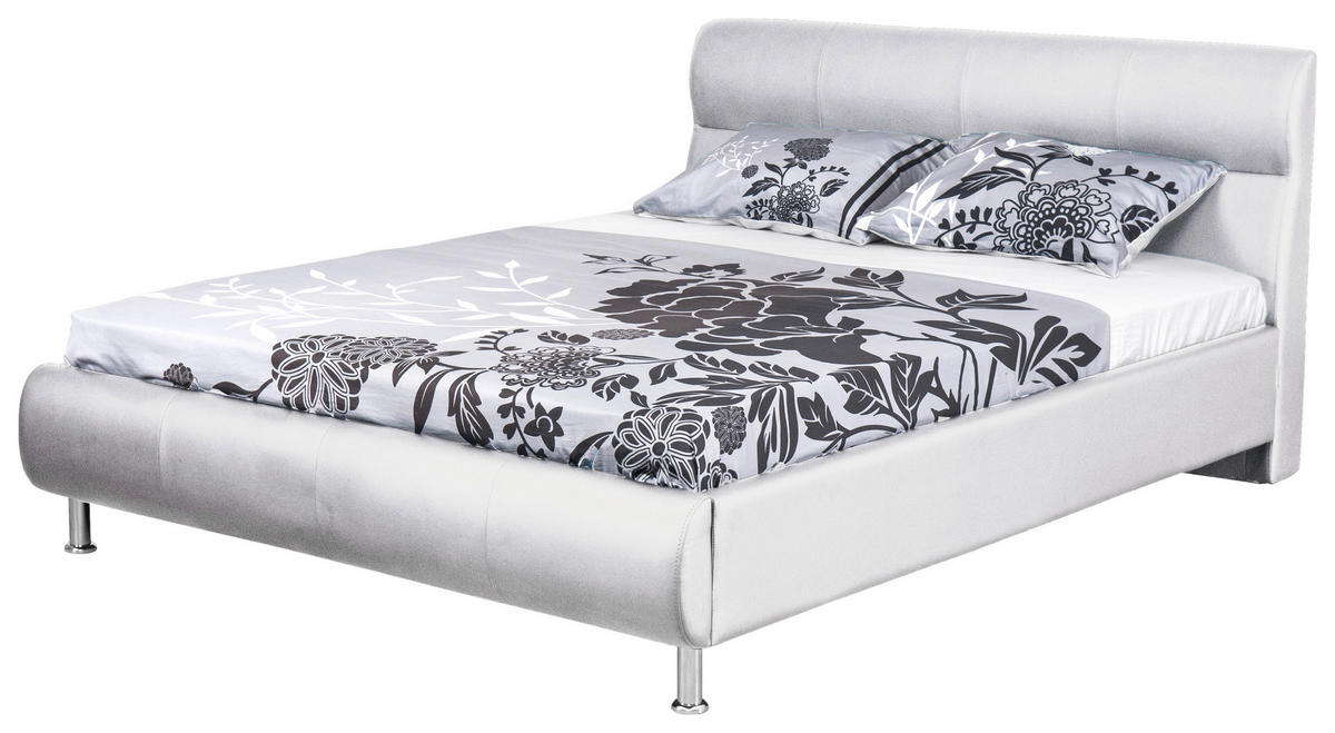 Pat Tapițat 160x200 Cm, 160/200 cm, alb - alb/culoare crom, Basics, plastic/lemn (160/200cm) - BoxxxBoxxx