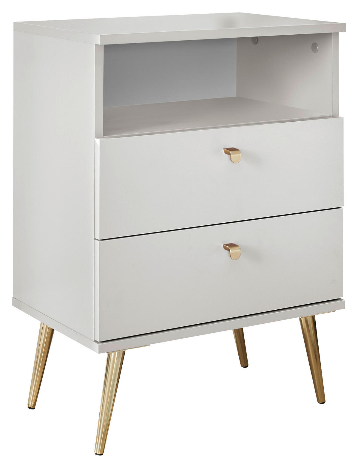 Noptieră, 50/70/34 cm, alb - alb/alămiu, Konventionell, metal/material pe bază de lemn (50/70/34cm) - CarryhomeCarryhome
