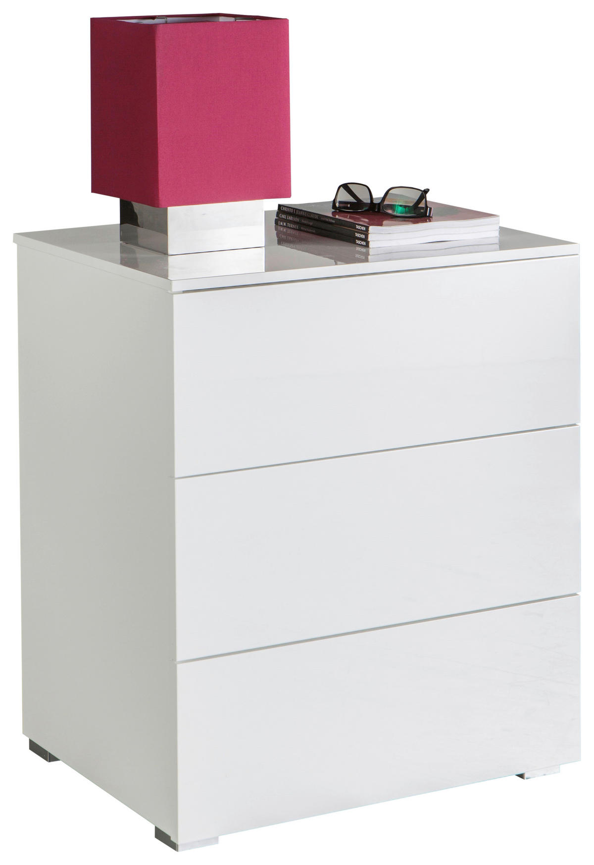 Noptieră, 55/64/44 cm, alb lucios intens - argintiu/alb lucios intens, Design, material pe bază de lemn (55/64/44cm) - Carryhome