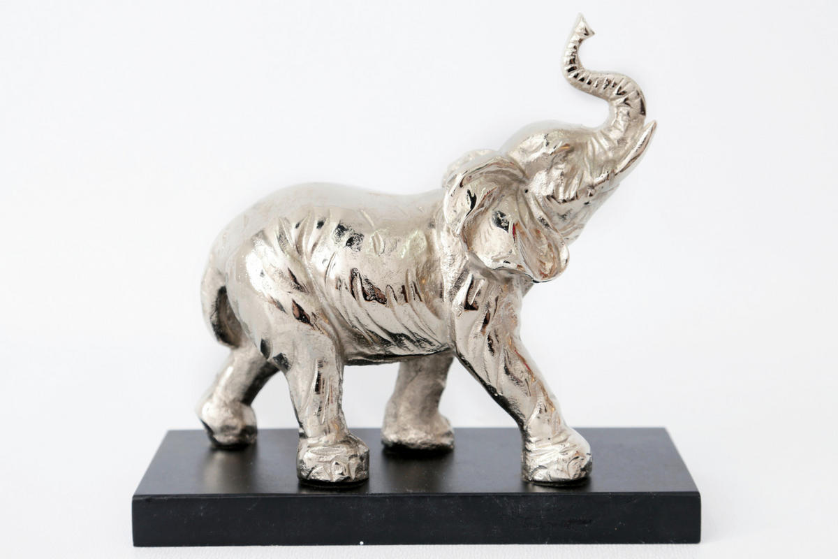 Elefant Decorativ - argintiu/negru, Basics, metal/material pe bază de lemn (27.5/21.5/9.5cm)