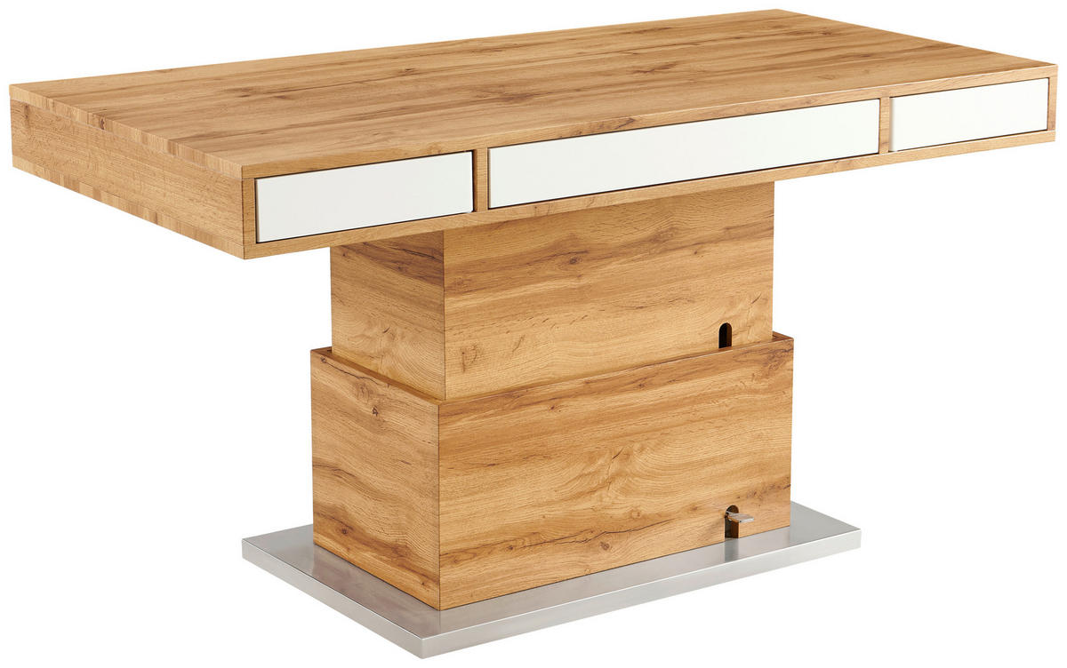 Măsuță De Cafea din metal, material pe bază de lemn, 140/70/48-77 cm - alb/culoare lemn stejar, Design, metal/material pe bază de lemn (140/70/48-77cm) - Livetastic