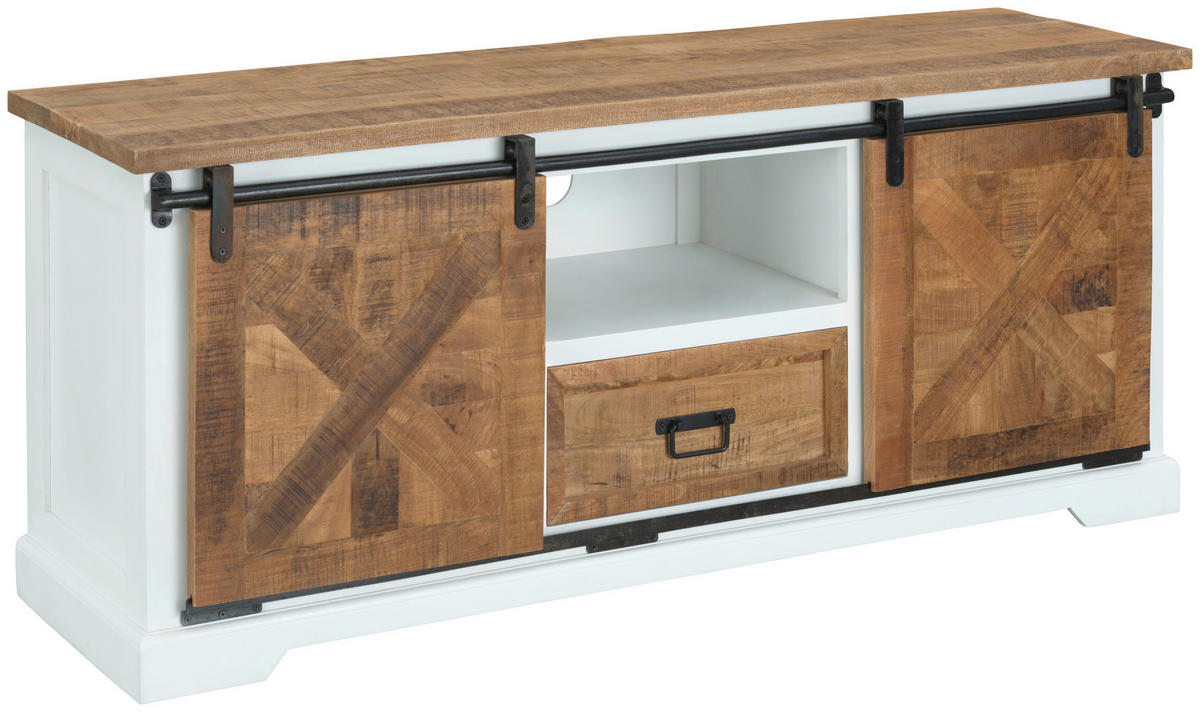 Comodă Joasă 150/63/45 cm  - alb/culoare natur, Lifestyle, metal/lemn (150/63/45cm) - MID.YOU