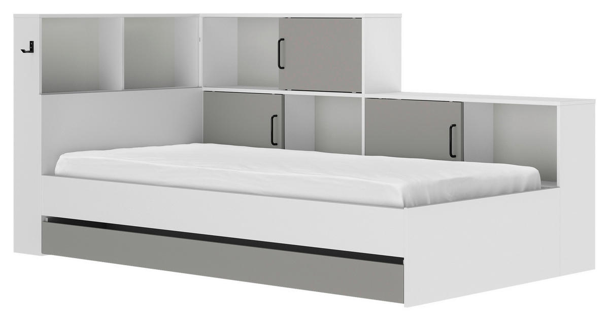 Pat Cu Spatiu Depozitare, 90/200 cm, gri, alb - alb/gri, Modern, material pe bază de lemn (90/200cm) - MID.YOU