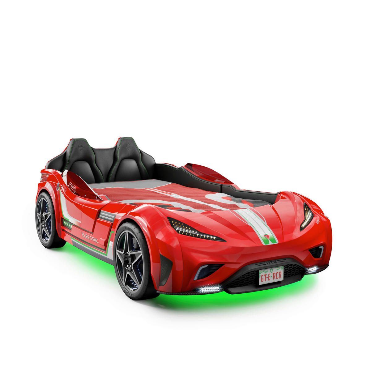 Pat mașină roșu cu LED integrat, 128 x 80 x 220 cm