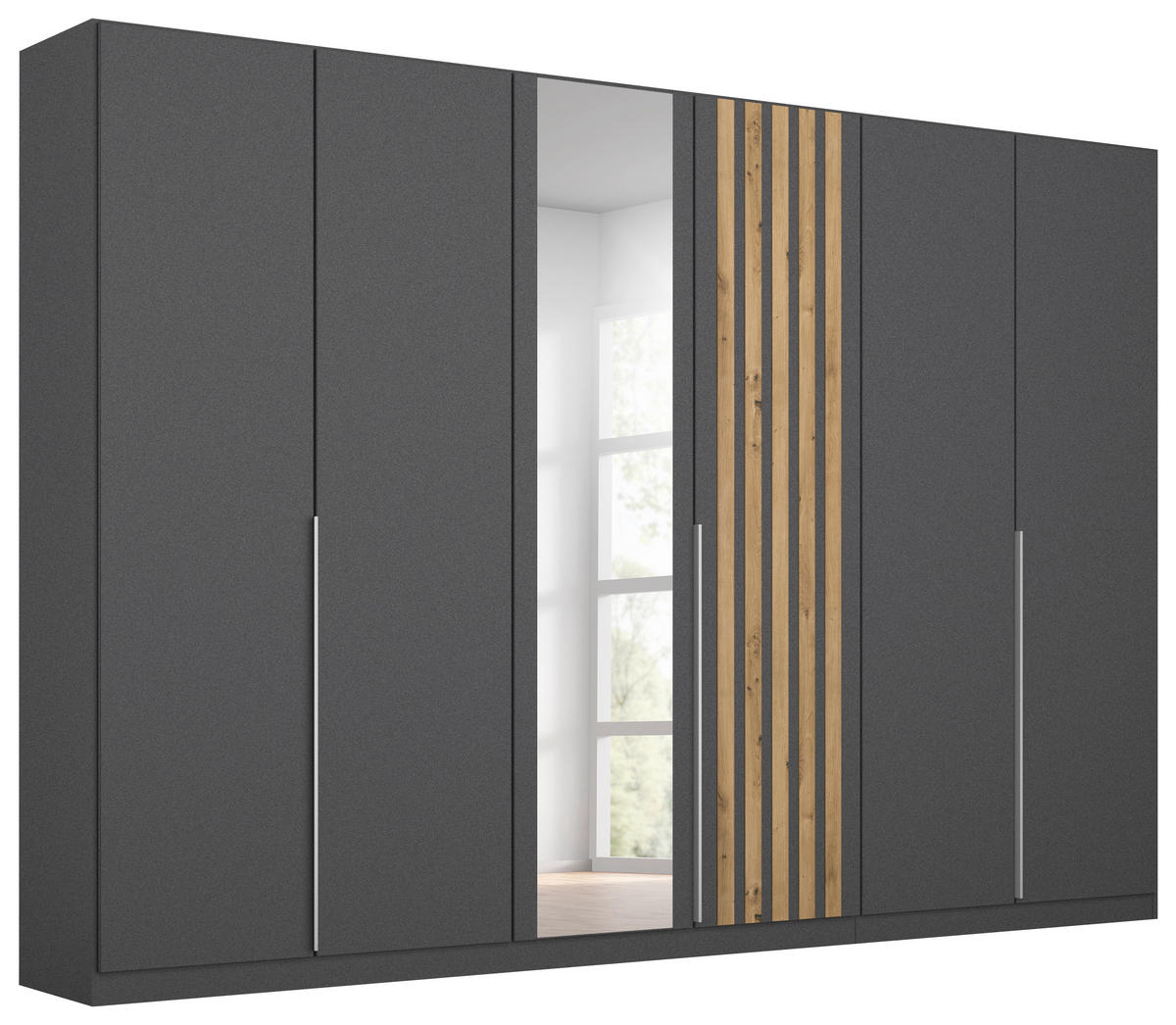 Dulap Cu Uși Rotative, 271/210/54 cm, gri, stejar Artisan - stejar Artisan/culoare aluminiu, Modern, metal/material pe bază de lemn (271/210/54cm) - Rauch MöbelRauch Möbel