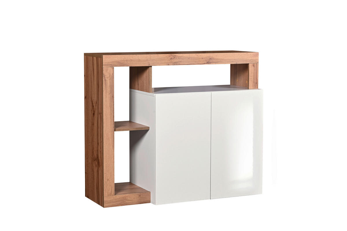 Comodă 108/93/42 cm  - alb lucios intens/stejar Wotan, Basics, material pe bază de lemn (108/93/42cm) - Ti'meTi'me