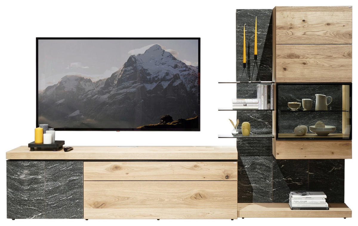 Set Mobilă Living, grafit, culoare lemn stejar, 288/180/43 cm - culoare lemn stejar/grafit, Design, sticlă/lemn (288/180/43cm) - Voglauer