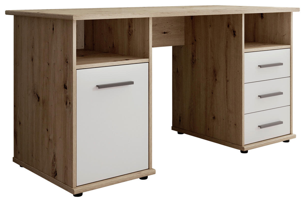 Birou, material pe bază de lemn - argintiu/alb, Modern, plastic/material pe bază de lemn (145/76/67cm) - Xora