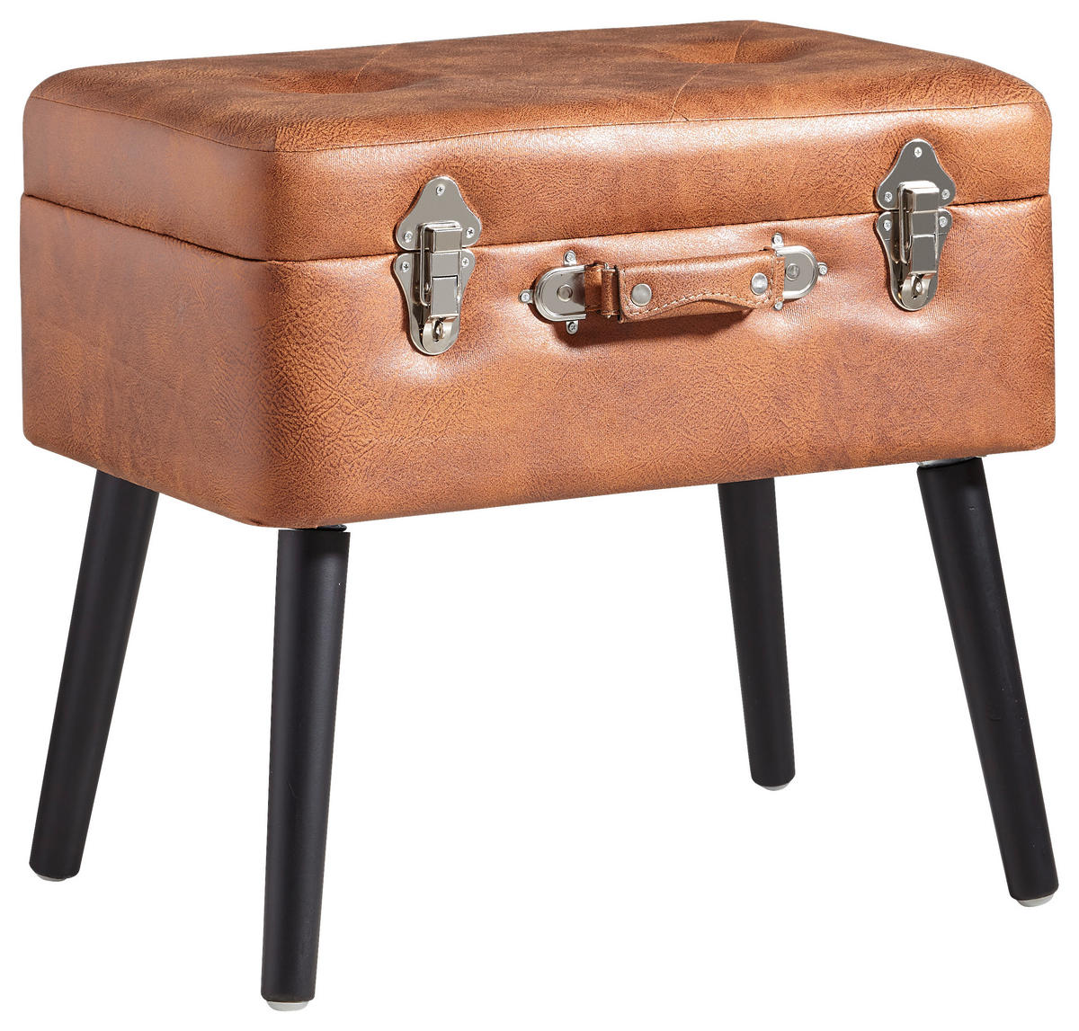 Taburet din lemn, textil, material pe bază de lemn, maro, negru - maro/negru, Trend, lemn/textil (50/46/35cm) - Xora